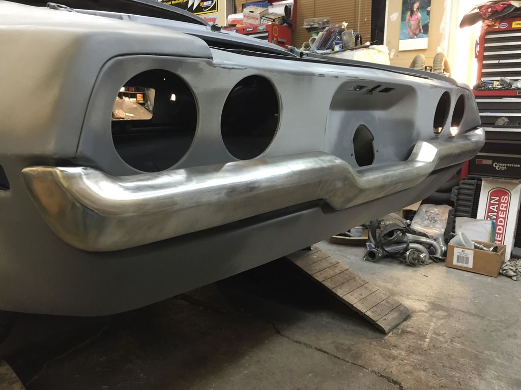 I liked the Detroit Speed firewall panel but didn't like the recess in it for the downward bars so I decided to make my own don't think it turned out to bad still got to body work it.