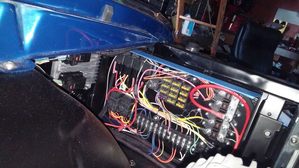 Not the greatest pics, btu I mounted my ECM on the driver side of the radiator support and built a small panel for the TCM and custom fusebox.