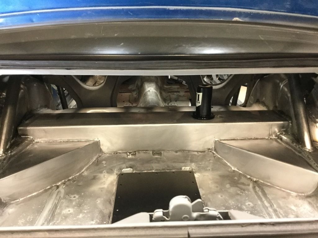 Yea I think the only way to make a choice is to mock up both. Got most of metal work in trunk done tonight. Boy it's real easy to flip thru builds on this site and go "I can just cut and weld that just like they did" wrong! I have huge respect for the guys that do this everyday. So here are some updates I got the fuel tank plumbing and the II much fuel installed. I Was very excited about using the stock 3/8" fuel line to work with a little bending here and there.