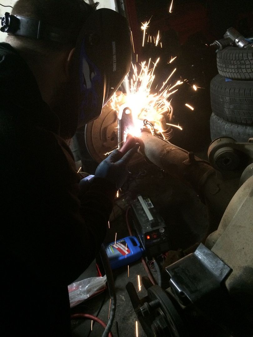 It's not fair to lump this in with setbacks, but it's just one more thing that got tacked on to a build that creeped. The V8 obviously speaks "roar" and the inline 6 does not. The rear end needed to be replaced, so I used the rear end out of the donor car -- a 1994 Mustang GT. In 1994, the differential was four linked. There's not enough money in the budget to make it that way in the '67 Mustang, so I cut all the brackets off it and smoothed it out for leaf spring mount plates.