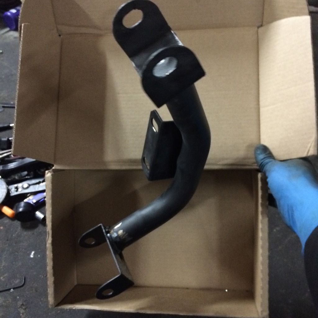 This is the transmission mount post welding. If you notice the tube is welded all the way to one side of the mount bracket. I installed it after I shot some black epoxy paint on it.. but I'm going to need to raise it. The driveshaft angle looks much better and the transmission pan is much more level to the car if I raise the transmission another inch. I hate when parts don't fit.