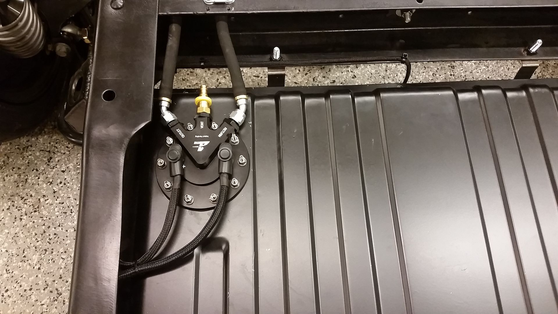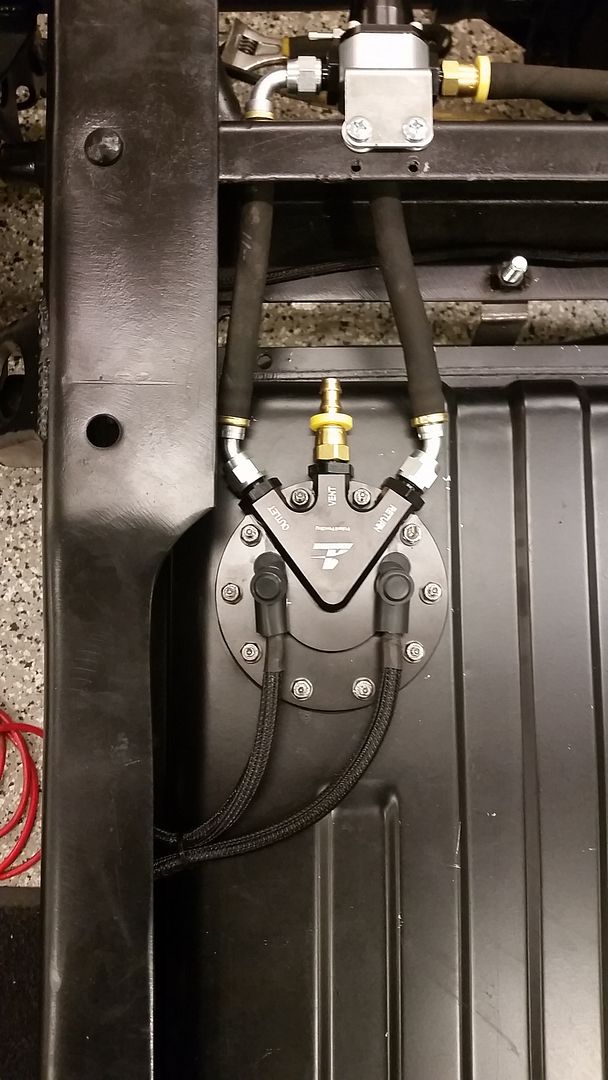 http://i1133.photobucket.com/albums/...psrzbyv9to.jpg I built all of the suspension points from the good stuff that the mustang has. Those are b&r upper and lower control arms, poly on one end and adjustable heim joints on the other for some good adjustability. Also, have some separation height on the upper, lower and Panhard bar adjust-ability to be able to really dial in the rear suspension. The one thing that is poorly engineered on the mustang is the upper 3 link bar. Its rediculously short. So I chopped it up and made it about 5" longer at a total length of 75% of the lower bars much better geometry through the range of travel this way. http://i1133.photobucket.com/albums/...psxjlomhga.jpg Then this happened.... http://i1133.photobucket.com/albums/...pso8amn1mv.jpg http://i1133.photobucket.com/albums/...psruugl54e.jpg Let the frame clean up and plating commence. Idont really have the budget for an aftermarket frame so trying to make this one as solid and clean as I can. http://i1133.photobucket.com/albums/...psn5fmtabe.jpg http://i1133.photobucket.com/albums/...psjrlznnpn.jpg http://i1133.photobucket.com/albums/...psf1qf2axa.jpg Close to ready to set the body back on. http://i1133.photobucket.com/albums/...pssx3e5buz.jpg Plumbing some brake lines...all Ultra Bend stuff, its amazing. http://i1133.photobucket.com/albums/...pszoimgo8o.jpg http://i1133.photobucket.com/albums/...ps9x2qlnsc.jpg 1970 mustang fuel tank, fit up to the old truck, hole cut for the Aeromotive Phantom 340 fuel pump. I will have enough pump, filter and delivery to support a supercharged setup in the future. http://i1133.photobucket.com/albums/...psll4ltdwq.jpg Starting to look like something. Coyote has a 6 speed manual attached to it at this point, motor and tranny are in for good, hydraulic pedal assembly is built from scratch and installed. Wheels are what I could afford, Iforged 18x10 Square setup all around Dunlop Direzza tires in 275/35/18 ( i plan on running bigger but needed to start somewhere) http://i1133.photobucket.com/albums/...psvvgc6y1d.jpg |