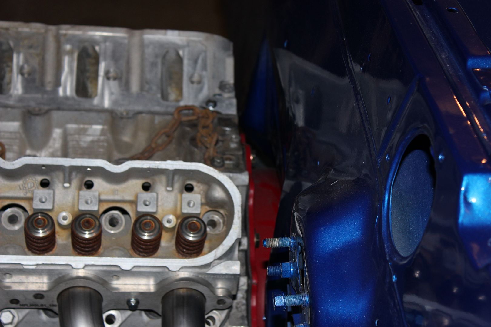 Over the weekend we where able to mock up the engine placement with the help of a Speedtech kit . It included the mounts stands as well as there oil pan and Stainless Works headers . http://i1036.photobucket.com/albums/...ps2thy45rj.jpg http://i1036.photobucket.com/albums/...psrzjxzebj.jpg Here you can see the Chicane coilover kit. http://i1036.photobucket.com/albums/...ps3mjnwf0e.jpg http://i1036.photobucket.com/albums/...psbsok5txa.jpg A few pics of the Speedtech ATS oil pan. What a nice piece ! http://i1036.photobucket.com/albums/...ps2x8usonq.jpg http://i1036.photobucket.com/albums/...psberhcays.jpg A couple of the firewall clearance. http://i1036.photobucket.com/albums/...pshaxknooj.jpg http://i1036.photobucket.com/albums/...psjxvtyjpq.jpg Looking underneath. http://i1036.photobucket.com/albums/...ps7dq5kwce.jpg Now time to get the transmission cross member and the bracing mocked up then out comes again for welding. |