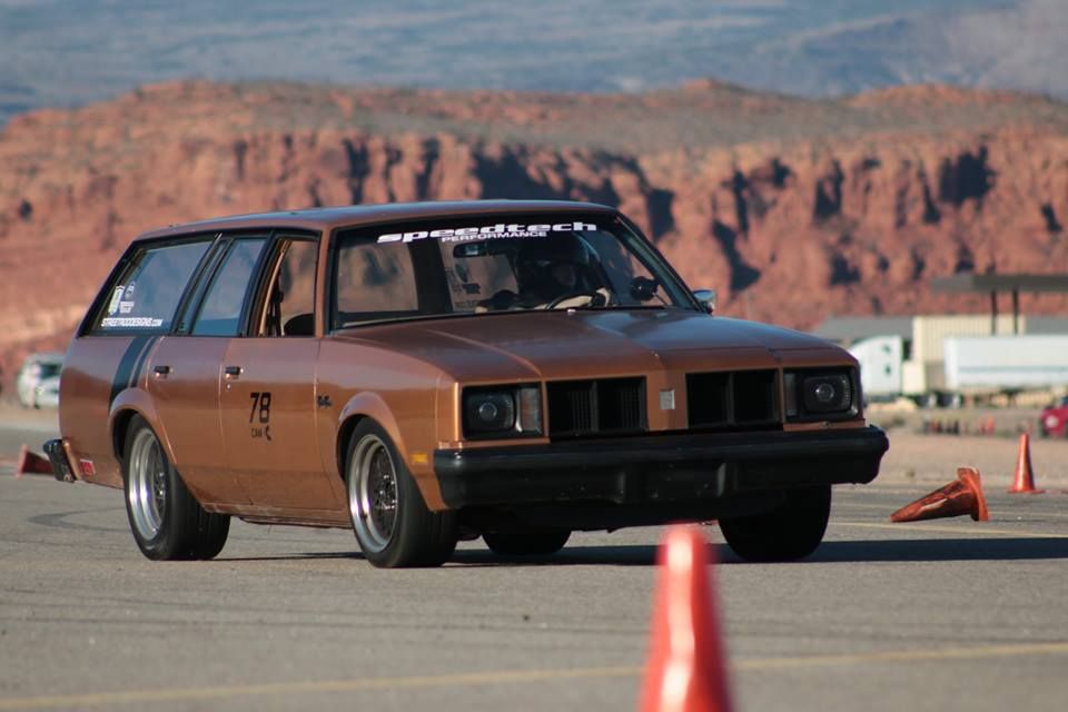 Hey all, my family had a rough day yesterday, my teenage son Roman was driving Coppertop, his Pro Touring 78 Cutlass wagon, on his way to work and a very negligent driver pulled right out in front of him while he was going about 40 mph. He tried to autocross around her but she never stopped and smashed into him as he was about to go by. The impact destroyed the front right of his car and it spun her around causing her rear bumper to crumple his rear 1/4 and blow out the rear window. His momentum caused him to cross over 2 lanes of traffic and jump a curb, ruining his brand new 18" wheels and Nitto tires. What a bummer. On mostly a Wendy's fast food paycheck budget he's been slowly fixing up this car for about 2 years and has recently collected a bunch of parts including Cipher seats, Speedtech suspension parts, and a Texas Speed cammed 6.0LS. He has some bruising from the seat belt and generally otherwise is ok, but he's real torn up about the whole thing, feeling the loss of his first car, which he's put so much into.