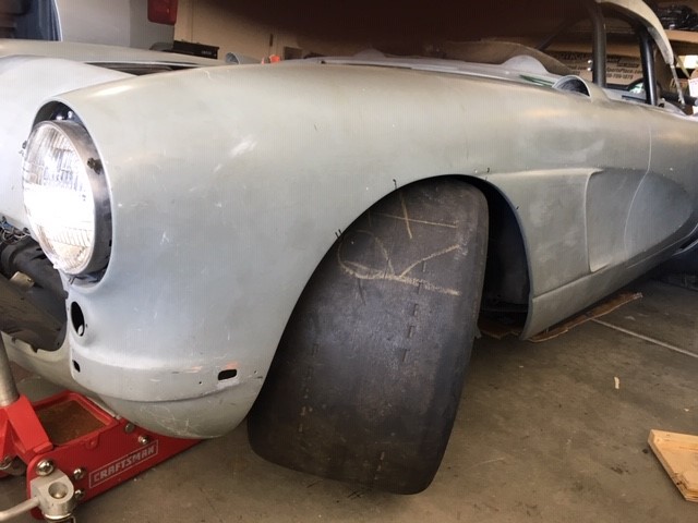 Short update. The DSE Decalink install is almost complete. Even though it was designed for a C-2/C-3 Corvette, it went in the C-1 chassis fairly easily. Modified the cross member to fit the C-1 frame rails, added a front hoop to carry the front of the differential, and added 4-link-style, adjustable pick-up points for the forward links. The 345s on 12.5 inch Forgelines fit perfectly. The motor is done - just waiting to get it on the dyno.