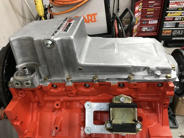 When I test fit the engine and the Mast pan I created a new clearance issue. The left front portion of the pan didn’t clear a steering rack fitting. I had to cut out a small notch and create a piece to go back in place to clear it. Before shot. https://i.postimg.cc/4dhGCcgT/0-FAE1...83-F794264.jpg After shot https://i.postimg.cc/Y9P5bCGy/CBC3-B...3-AFC31-C6.jpg https://i.postimg.cc/kXPJmTGY/BD91-D...54-A6424-D.jpg https://i.postimg.cc/GpLnpNnz/CC2573...924-BA8-F1.jpg https://i.postimg.cc/7LFc2Qpp/9458-F...815-DCFF63.jpg Next up was to create a trap door baffle for the pan. I started by cutting out the cast baffle in the pan. Then I started with a Improved Racing baffle for a Holley pan. The first issue is the Mast pickup is clocked 180 degrees opposite of the Holley so this meant the lower part of the trap door had to rotate 180 degrees as well. Here is what I started with. https://i.postimg.cc/pdSv1Z3Z/D232-B...0-F3-B7-C9.jpg Here is the Mast baffle laid over the Improved Racing trap door. https://i.postimg.cc/fWqqTT0f/80740-...-D9-E28-B1.jpg The pickup difference. Mast on the left, Holley on the right. https://i.postimg.cc/sxLTnwRN/1-C593...AC39-F2122.jpg And here is what I ended up with. It took way to much time to make this piece. https://i.postimg.cc/htSKJh99/86-D53...-DC28-CAFB.jpg While fitting the pickup I decided to make the little hold down to use the second bolt on the oil pump. You can buy these but I was ready to button up the pan and didn’t want to wait so I made this one out of some scrap metal. https://i.postimg.cc/CKBXdV6G/296613...-A005-D6-E.jpg Before buttoning it all up I ran the Pan, and baffle through the dish washer to give it a good cleaning. Since it was not oily the wife approved. She has gotten used to parts coming into house for various reasons over the years. |