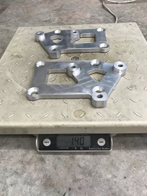 The Speedway motor mount plates that attach to the block position the motor really well but they are made of steel and felt very heavy. The other thing I didn’t like was they used some separate spacers to position the actual motor mounts. This is just a pet peave but I hate have to line up bolts, spacer, motor mounts, and engine plates. So I decided to make some lighter weight ones out of 6061 Aluminum to save weight and incorporate the spacers in the design so I don’t have to worry about them falling out and rolling off when taking things in and out. Also saved 2.8 lbs ! My oldest son is a CNC machinist and enjoyed the challenge. He did a great job. This is probably the fifth or sixth set of LS mounts he’s made for me for various projects.