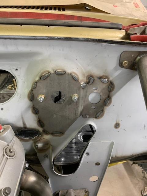 https://i.postimg.cc/brcc69g4/7-BF1-...656-D01-F3.jpg https://i.postimg.cc/GtF06TSt/7-CD7-...5-E7-FCCC0.jpg I have lost count on how many times the engine transmission and the front sub frame have been in and out of this car. https://i.postimg.cc/6TJ1z415/D10820...A53912-DFC.jpg Welded in the DSE clutch master mount. Welded up a DBW pedal mount, and vintage air mounts on the other side of the firewall. https://i.postimg.cc/XqGG1W4Y/CAE2-E...390-E4-DC9.jpg |