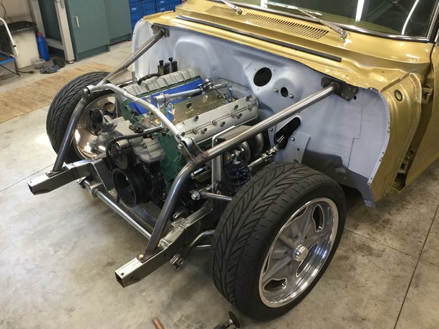 https://i.postimg.cc/d1h5KTRf/A94189...E4-D431-EA.jpg https://i.postimg.cc/rm7QyFQw/68-C87...43-B033-CD.jpg I began attacking the time consuming stuff. I learned from my previous build to use Nicop for brake lines. I actually enjoy making them. I try to minimize the joints and I use stainless clamps to hold them in place. I was able to make the brake line from the proportioning valve to the rear axle in two pieces. Another little idea I came up with is to use heat shrink tubing on the lines were the clamps are. You just have to remember to slide it on before flaring your last fitting. I used Banjo to A&N fittings for the steering rack as they provide the most clearance and the ability to clock them at any angle. https://i.postimg.cc/52HnSSq1/57-B9-...913-A5-F08.jpg https://i.postimg.cc/cCXXXDb1/062-FA...F2-BD0-C45.jpg Not the best picture but this is a example of a line I made with the heat shrink on at the clamp locations. https://i.postimg.cc/hjqSnhpp/22-F25...A4-A9422-F.jpg https://i.postimg.cc/153WfQ88/B48-BC...48-AA70-A6.jpg I’m using Speedway Motors Headers made by Dynatech. They have 1 7/8” primary tubes and O2 bungs. They are a mild steel header and fit great. I did not like the three bolt flange on the collectors so I cut and ground the welds to remove them. Then changed to stainless steel V-band type instead. Then I sent them off to M & R coatings in Kodak, TN. To get coated. They do great work at a reasonable price if your looking to have any exhaust components coated. Interesting story on the headers. When I ordered the suspension and subframe, Speedway was out of the headers and I was told they were on backorder. After checking for weeks on end they told me the demand wasn’t there and they wouldn’t be getting any more. I tried going straight to the source but minimum order qtys and Speedway owning the design kept that from happening. I looked at the Church Boys Racing Headers and at Ultimate. But they didn’t work for my application. I twisted Speedways arm a little and they ordered five more headers and I got a set at half the price for my trouble. So if you need LS headers for a 62-67 Chevy II they have four more at half price. Here’s a link for anyone interested. https://www.speedwaymotors.com/G-Com...sh,205590.html https://i.postimg.cc/tJ5m8RYj/575-EC...995-DEE8-D.jpg https://i.postimg.cc/4NYzDNKQ/16-D76...B952913-A1.jpg |