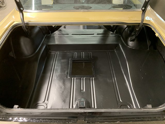 Added a DSE fuel pump access panel to the trunk floor. I had the bottom of the car and trunk coated with a bed liner type coating. The inside just a satin black.