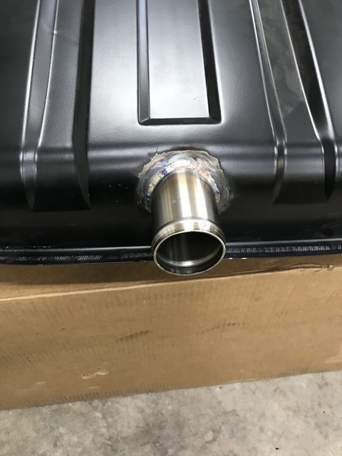 I am using a Ricks restomod fuel tank. I opted for the internal corner pickups. As I mentioned earlier my fuel fill location needed to be changed. Randy was able to get me a heavy walled stainless filler neck that was welded into the new location. I was concerned I might have some fuel slosh issues so to counter this I made a few things to deal with this. First the fill tube is extended into the tank several inches, second the end in the tank has a reverse facing piece of metal that acts like a dam in the lower third of the filler. Fuel goes in like a ramp but fuel trying to go out is partially blocked. I used a short piece of hose between the tank neck and the actual filler that is a 89-97 Ford Ranger upper neck. I chose this because it had two features I wanted. First it has a nozzle flap like the late model cars and second it’s a tube in tube design again to deal with any fuel slosh. The last thing I did was create a internal flap that is hinged on the end of the tube inside the tank. Probably overkill. https://i.postimg.cc/fWK2zLR4/F64-BC...14-E39-A72.jpg https://i.postimg.cc/4yJWvCwF/CC3-C3...CABA1-BCA8.jpg https://i.postimg.cc/85dyrkd6/A325-D...BB0-ADAEFA.jpg https://i.postimg.cc/hPZ2m5mp/8-A2-F...-F8612-C05.jpg https://i.postimg.cc/xTK6nTf8/DF5955...-D8-E8-DF4.jpg |