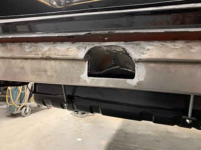 One of the the issues I had to find a solution for was a gas filler location. The previous owner had the fender opening closed up and the filler neck came out in the trunk over the left rear wheel well. I didn’t like it being so far in the trunk and in a weird place to access. Having built a A-body car I decided to build it so the filler would come out the rear bumper behind the tag. The new mini tub eliminated the previous filler location. I told Randy what I wanted to do and asked if he could make a slight relief in the trunk floor.