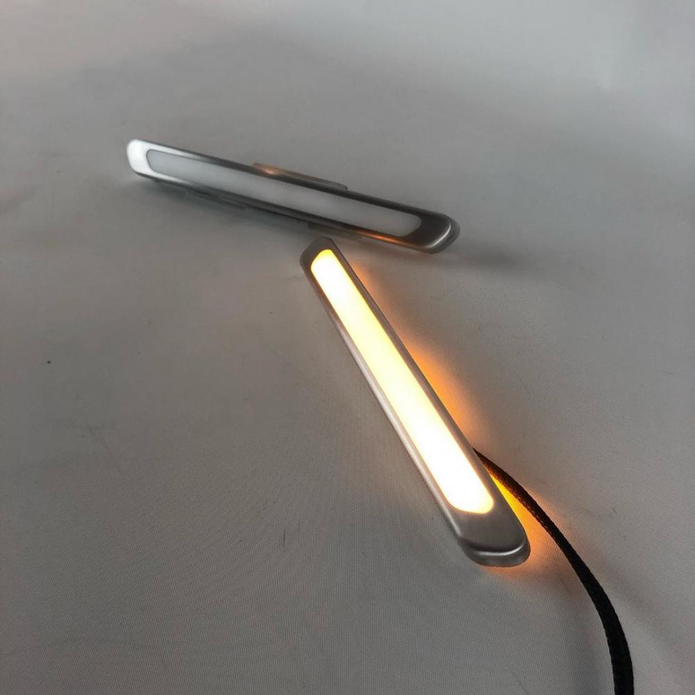 Now that I was running fog lights, I need a new place for turn signals. I sketched out an idea for some one-off billet housings which would hold a switch back turn signal/DRL. I sent them to Jonathon at Sparc Industries and he machined up a set of lights that "float" in the center of the brake duct openings.