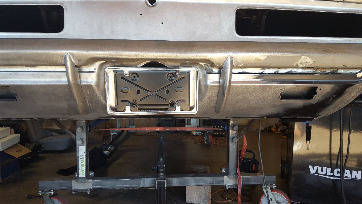 Here are the rear bumper mods. Pretty much typical of what everyone does now. Modify the brackets and pull it in closer to the body. Cut off the ends and tuck them closer and shave the bolts for a smooth look. Although I can appreciate the amount of work, I am not a big fan of notching the quarter panels with a pocket to bring the sides of the bumper in. I like the classic look so I just contoured them a little better to the body and thinned out the bulky ends a little bit.