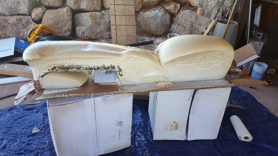 Since the dash had been modified, I needed a custom dash pad. Again trying to keep with somewhat of a classic look. We hand fabricated a dash pad base out of steel and made it attach the exact same as the original pad. Then we made a giant mess with some expanding foam and started to carve out something close to original.