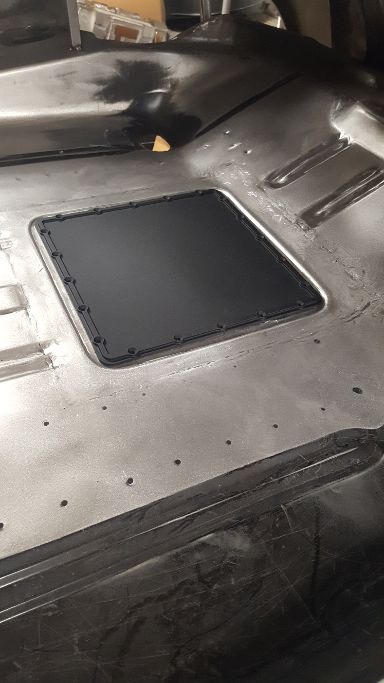Random trunk pics. This a CNC machined billet fuel tank access panel. It came for Billy Utley at B&B Classics.