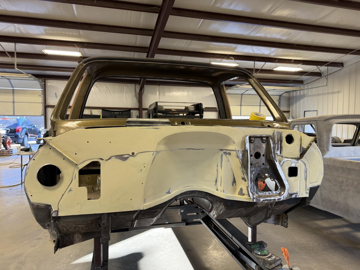 Last year I ordered a Roadster Shop Legends Blazer chassis. I was able to get my hands on the elusive LT4 so it’s probably one of the last ones to come out of there with one. They only offer the LT1 option as of now. I took delivery of it last month and it’s an impressive piece of engineering. I found a very nice 76 Blazer from Boris with the intention of just two-toning it and being done. But we had some old corrosion coming thru the hood and couldn’t match the factory Moss Gold so we’re at a full repaint. The Blazer was repainted about 11 years ago and looked great but this is how it goes. |