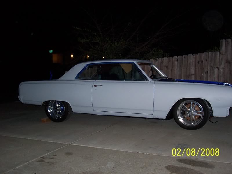 i got the car to the show what a pain in the ass it was to get it back together in a week when parts were out being blasted and what not. drove good had a cupple little problems like running a little hot 210 nothing to bad and the tranny is slipping so ill have to get it rebuild. here are some pics of how the car is now. also here is a exhaust clip its 3in into a x pipe into dynomax bullets dumped befor the rearend http://i41.photobucket.com/albums/e2...velle/gg10.jpg