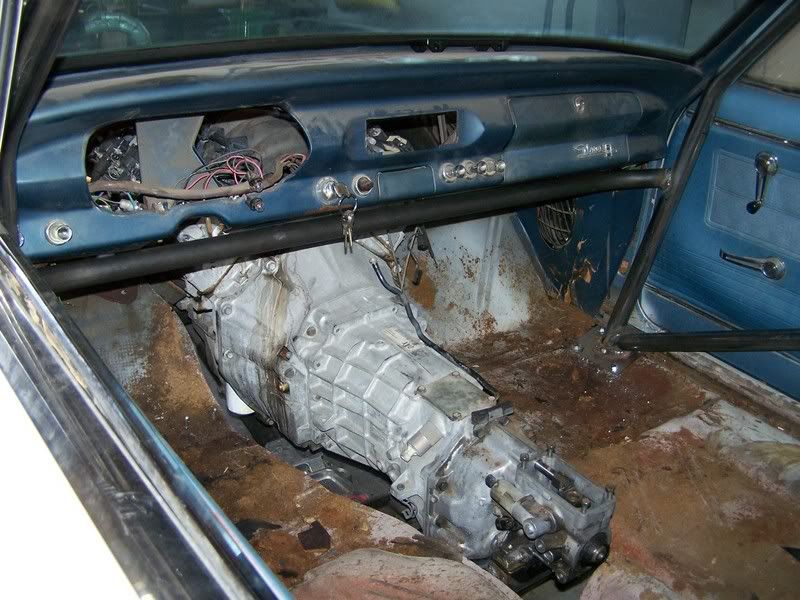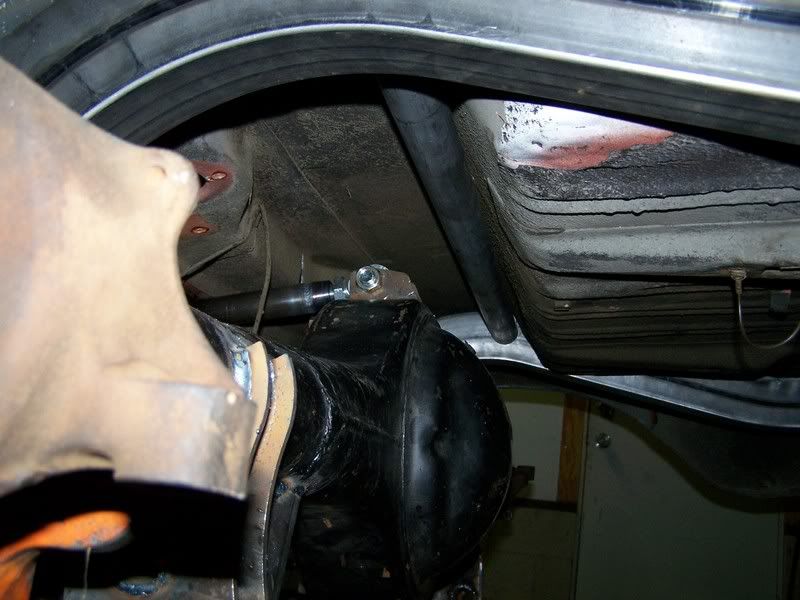 Here is the rearview, the angle is misleading but the bottom of the new cross member and tranny case is almost perfectly even with the height of the body line. http://i41.photobucket.com/albums/e2...r/101_0884.jpg From the side you can see the stock member hanging below the body but the new one is out of sight. http://i41.photobucket.com/albums/e2...r/101_0879.jpg |
