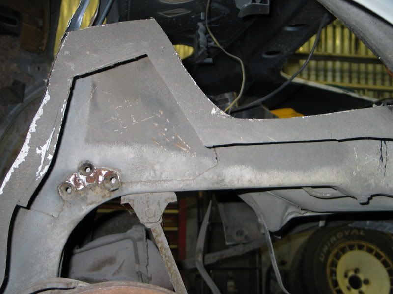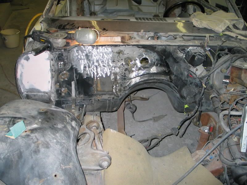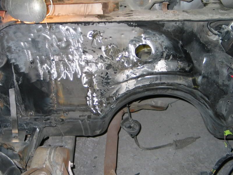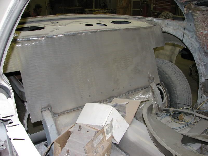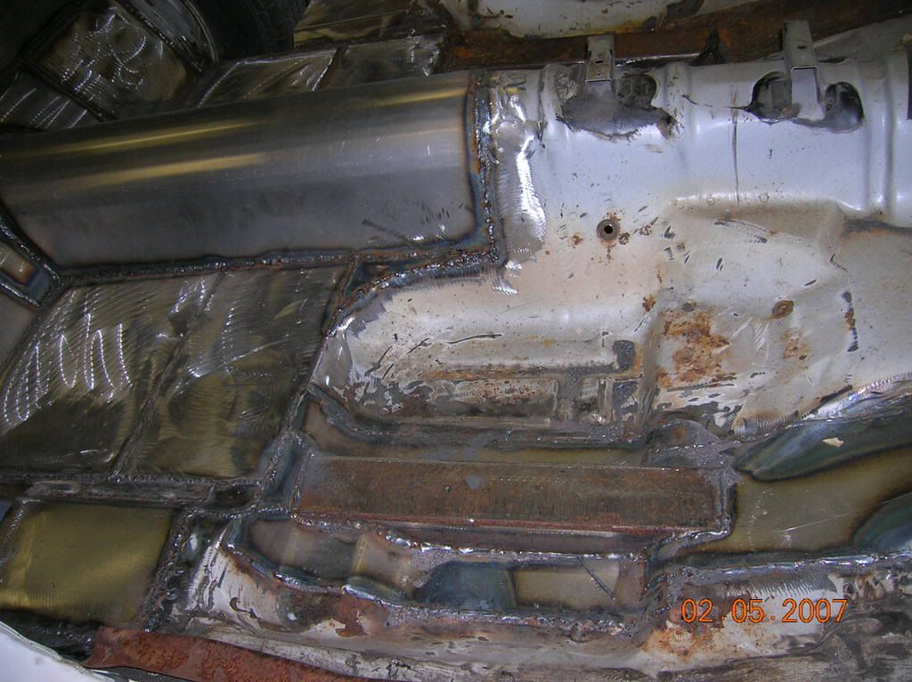 Here is the backseat area all welded back in: http://i168.photobucket.com/albums/u...A/IMG_0662.jpg And here is a shot of the new wheelwells in the trunk area. http://i168.photobucket.com/albums/u...A/IMG_0666.jpg And view from the outside: http://i168.photobucket.com/albums/u...A/IMG_0665.jpg Once all of this is put back together and prettied up a bit, I am going to coat the inside of the car and trunk with the hippo liner truck bed liner stuff. |