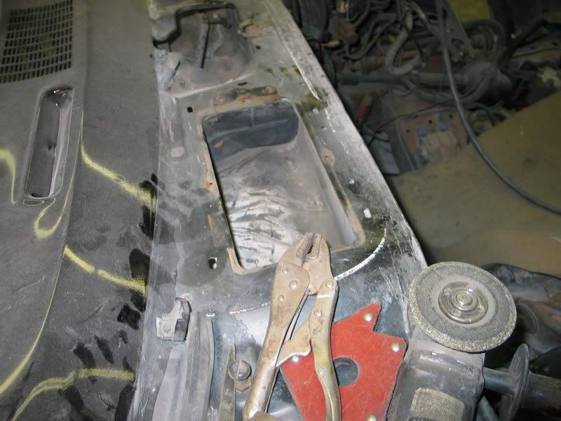 http://i168.photobucket.com/albums/u...9-14-05020.jpg And the stuff cluttering it really looks like crap. http://i168.photobucket.com/albums/u...o10-5-0515.jpg So I just had to have a smooth firewall. Here was my first attempt to fill and smooth it out. http://i168.photobucket.com/albums/u...A/IMG_2833.jpg And http://i168.photobucket.com/albums/u...A/IMG_2835.jpg Also of note, since I cant seem to find the pictures of the Dash repair, note the rusted out condition of the corners of the dash in the first picture - it was even worse on the driver's side. And then in the last picture, its repaired and repainted - though I will have to redo it, I now realize I had too much gloss in it. |