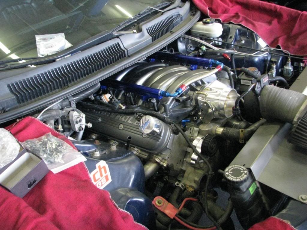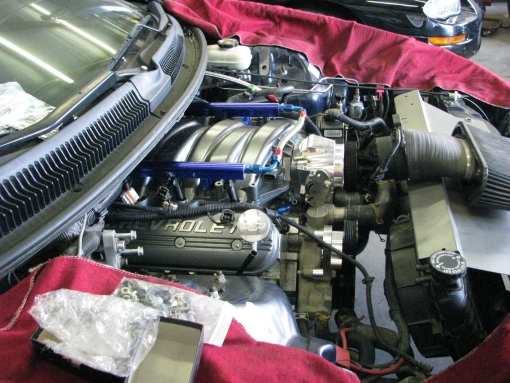 RESLEEVED LS1 BLOCK BY MTI CALLIES “DRAGONSLAYER” CRANKSHAFT 4.0” STROKE CALLIES “COMPSTAR” CONNECTING RODS 6.125” WISECO PISTONS 4.125” DOUBLE ROLLER TIMING CHAIN SDPC PORTED AND SHIMMED OIL PUMP ARP MAIN AND HEAD STUDS COMETIC GASKETS LS7 CYLINDER HEADS BY BAUER RACING ENGINES CUSTOM 2.20” TITANIUM INTAKE VALVES CUSTOM 1.6 SS EXHAUST VALVES CNC PORTED EXHAUST RUNNERS PEAK FLOW #’S INT=370 @ .650 EX= 258@ .650 FACTORY LS7 INTAKE MANIFOLD PORTED BY BRET BAUER OF B.R.E. CUSTOM GRIND COMP CAMS CAMSHAFT BY BRET BAUER “CHUCK NORRIS GRIND” TOP SECRET SPECS FUEL SYSTEM BY NASTY PERFORMANCE PROTOTYPE LS7 BILLET FUEL RAILS 60 LB/HR MOTOTRON INJECTORS WALBRO 255 LPH INTANK FUEL PUMP PLUG AND PLAY HARNESS Combination of things on the long wait. Most of the wait time was the heads. Friend of mine ported them and they were and as far as I know the only set just like them in the country. He ports for a very famous Corvette shop(can't say!!) and he did these on the side. About the time all of that got finished I moved and when I picked up the short block we noticed I had 2 piston skirts barely rubbing the counterweights on the crank. So I had to order new pistons... The list goes on and on and on.... The Valve covers are the GMPP ones that I had powdercoated. ~$200 IIRC. Here are a couple of pics, not much just the painted intake and fuel rails and then a few shots of the car in decent light. I appreciate the interest. It has been a labor of love, as I sure all of these cars on here are. Haven't worked so much on the looks part yet. Paint is about a year away.. http://i153.photobucket.com/albums/s...s/IMG_3562.jpg http://i153.photobucket.com/albums/s...s/IMG_3558.jpg http://i153.photobucket.com/albums/s...s/IMG_2046.jpg http://i153.photobucket.com/albums/s...ofIMG_2042.jpg http://i153.photobucket.com/albums/s...s/IMG_2043.jpg |