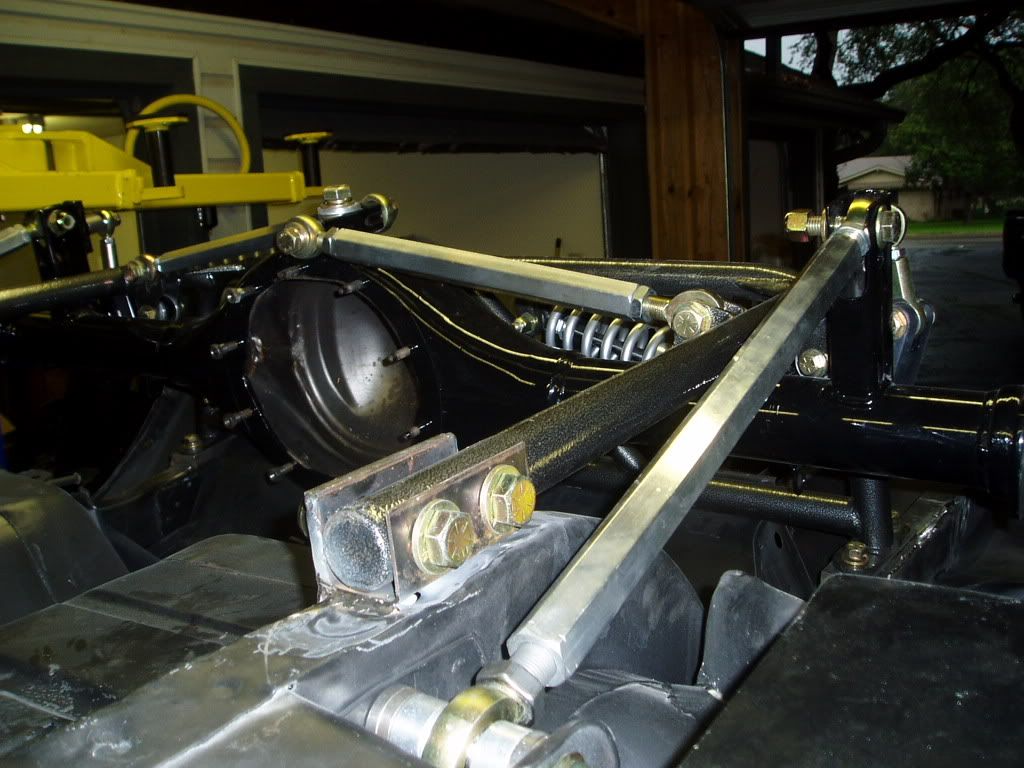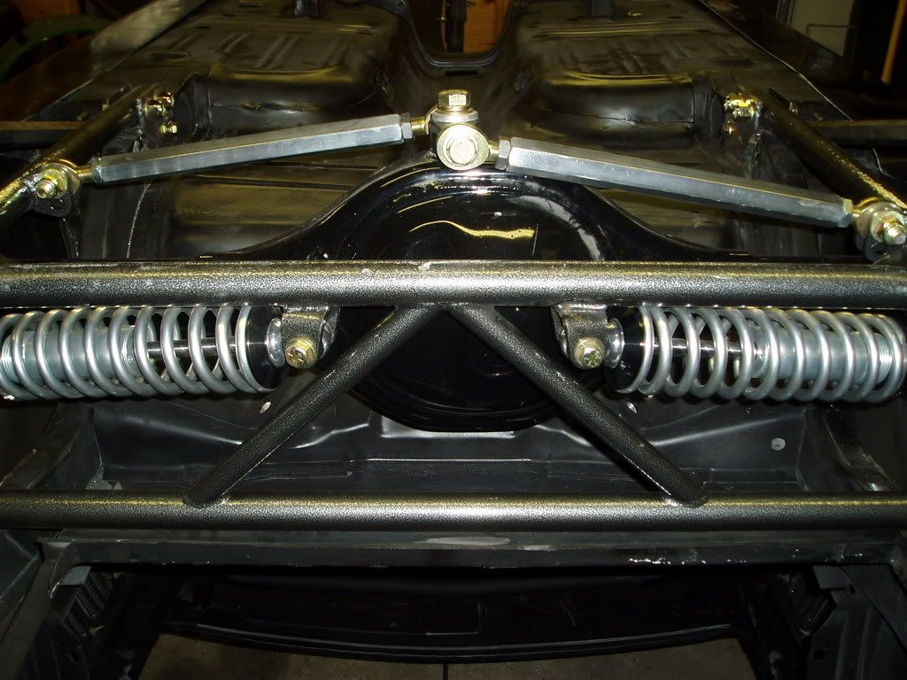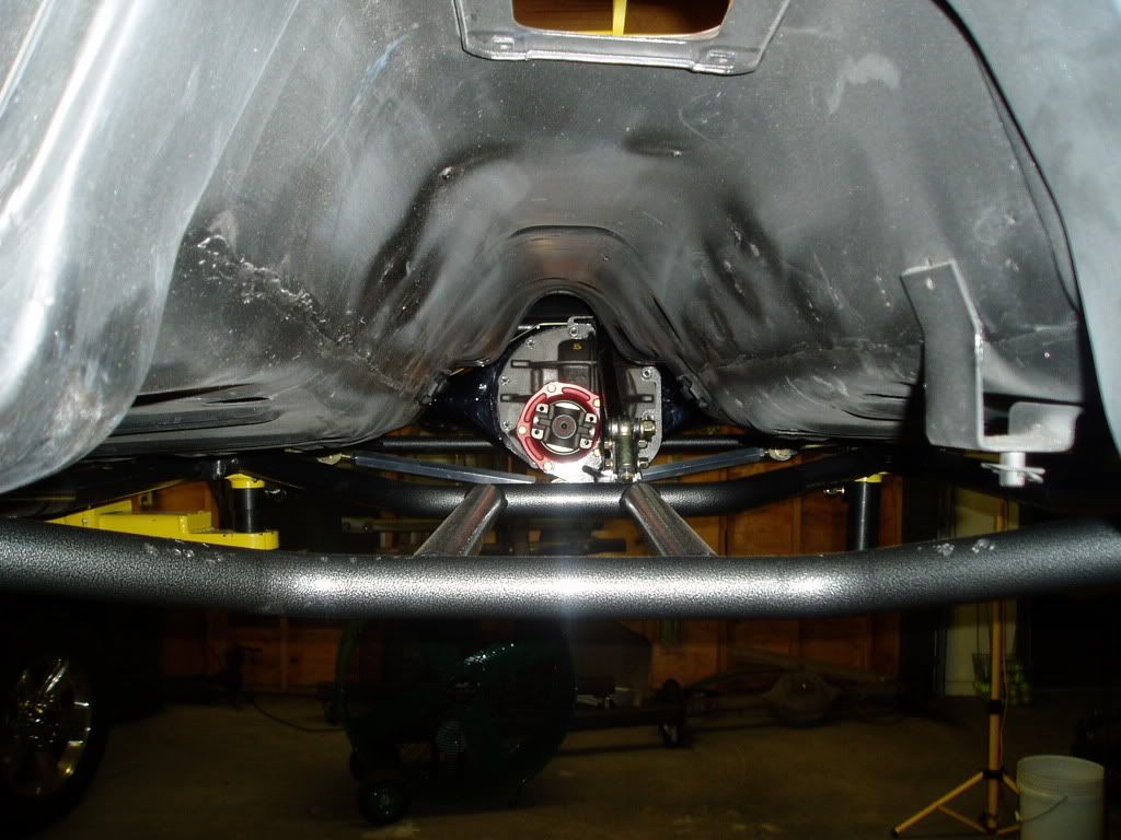 http://i98.photobucket.com/albums/l2...6/P7220001.jpg After carefully measuring I tack welded it in to place. Loosened all the bolts, measured again, and then finished the welding. I also installed side mounting plates to give additional strength. http://i98.photobucket.com/albums/l2...6/P7220010.jpg http://i98.photobucket.com/albums/l2...6/P7220008.jpg Installed the Currie 3.25:1 differential, torque arm, and side subframe braces. http://i98.photobucket.com/albums/l2...6/P7240004.jpg |