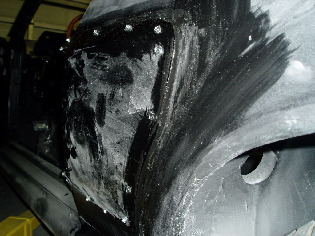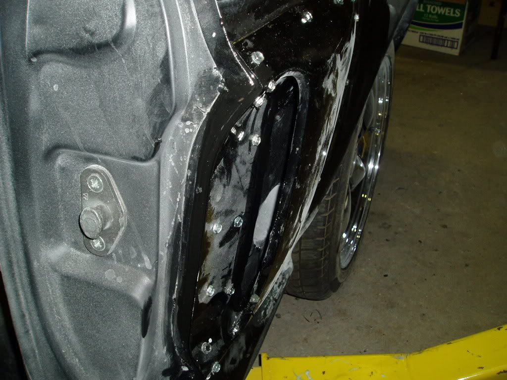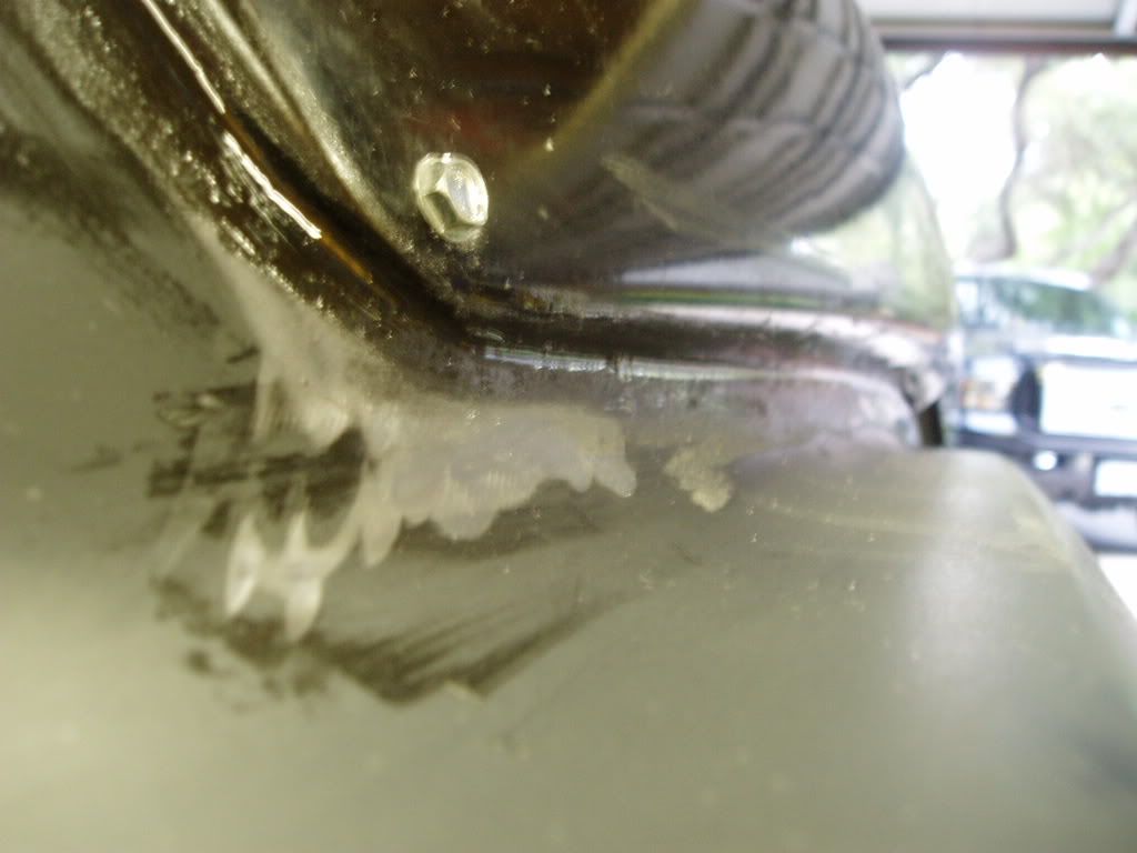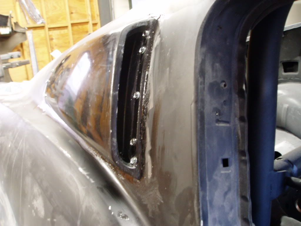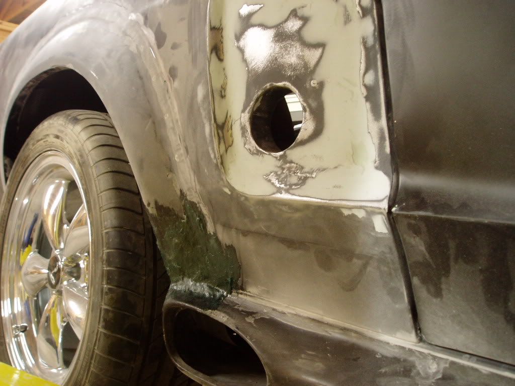 http://i98.photobucket.com/albums/l2...6/P8190010.jpg See how the bonding agent fills the gap very well. The fiberglass does not need to be a perfect fit, just within 1/16". And don't squeeze out all the 8115. This is the finished product. It has no gaps and needs little or no filler. Photo does not do it justice! http://i98.photobucket.com/albums/l2...6/P8190013.jpg http://i98.photobucket.com/albums/l2...6/P8190016.jpg I prep'd the side scoop area. Whenever I sand down to metal, as a rule of thumb I always use an epoxy primer (not shown) to seal it. Some people will use bondo right on top of bare metal. I believe that you really need a sealing agent to keep the metal from rusting! So next will be an epoxy primer coat, and then a little feather fill. Note how I used a little Kitty Hair to fill between the fender flair and the rocker panel. http://i98.photobucket.com/albums/l2...6/P8190017.jpg |