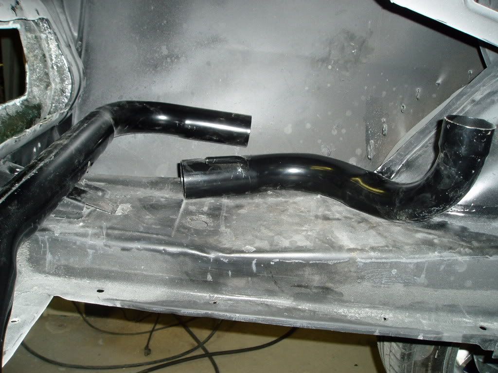 Installed the exhaust system. Putting the exhaust through the rear torque boxes is a challenge. It took me 1 1/2 days to finish. http://i98.photobucket.com/albums/l2...6/P9140006.jpg Muffler is only tacked on inlet side at this point. http://i98.photobucket.com/albums/l2...6/P9140008.jpg With a little ingenuity you can size down the hole in the rocker to only this small access hole for the exhaust tip clamp. http://i98.photobucket.com/albums/l2...6/P9140007.jpg Welded in the drive shaft safety loop. http://i98.photobucket.com/albums/l2...6/P9140009.jpg |
