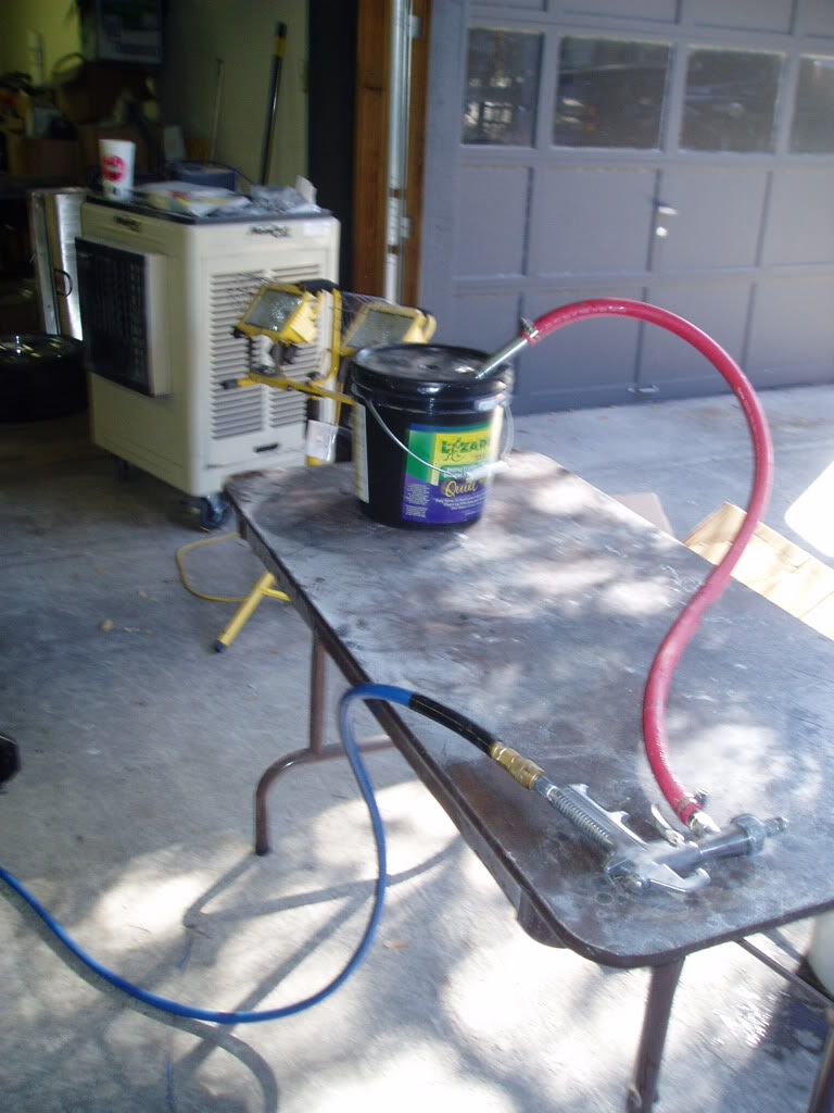 I shot the underside with 2 coats of Lizard Skin Sound Control and 2 coats of Lizard Skin Ceramic Heat Insulation. http://i98.photobucket.com/albums/l2...6/P9010002.jpg Pictures are washed out. It is a little black, but very flat in color. http://i98.photobucket.com/albums/l2...6/P9010007.jpg This is more how it really looks. http://i98.photobucket.com/albums/l2...6/P9010008.jpg I went ahead and shot one more coat of a product called Total Control. It is a glossier black, and has an orange peel finish. I went ahead and shot the engine compartment with this and I like how it turned out. I replaced the U&LCA's, spindles, brakes, tires, R&P, and coilover rear end tonight. All in about 3 hours. |