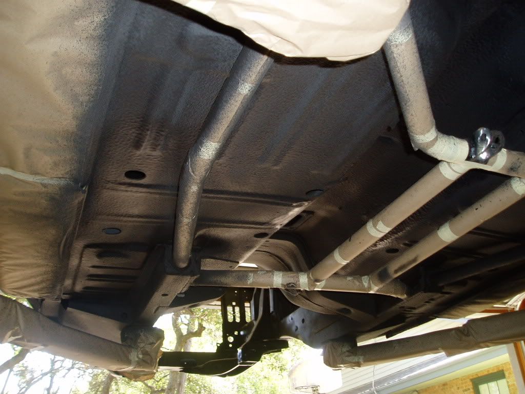 I dropped the front and rear running gear, and prepared the entire car for undercoating.