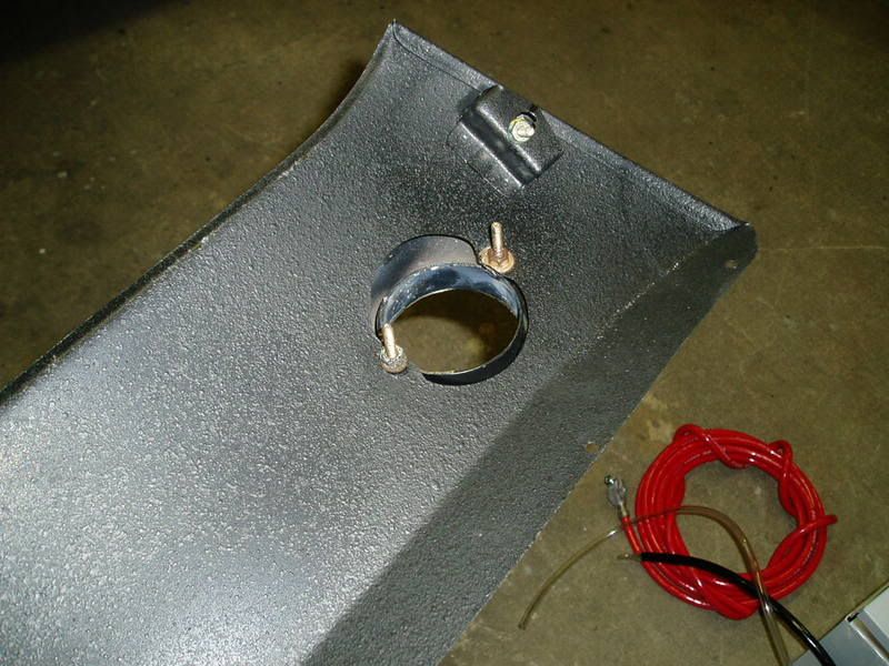 I installed the battery box and mounted it to the frame to comply with NHRA rules. I also cut through the bottom of the battery box, insulated the holes and run the cables out the bottom of the box so you cannot see any wires.