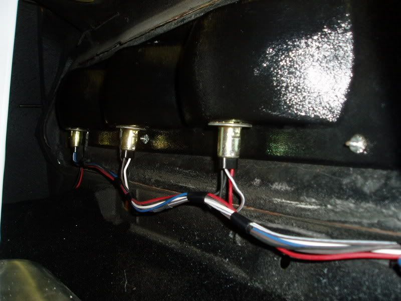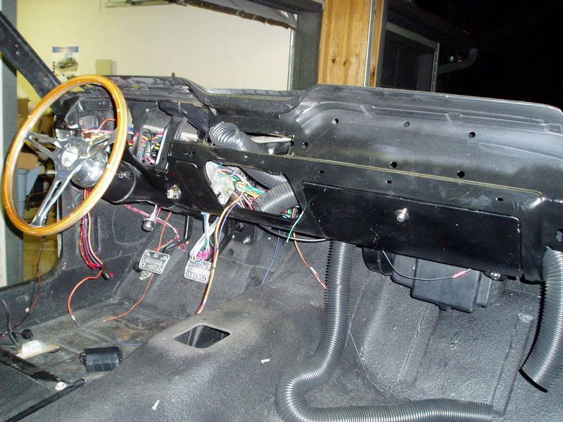 Here is the UP taillight sequential wiring harness. I liked how it eliminated all the cutting and crimping. It connects to the PIAA back up lights (connectors already there). You only have four wires to hook up and a ground. You will have to put on your own connector to the rear harness. I just cut off a four wire connector from the old harness and spliced it on to the new one. http://i98.photobucket.com/albums/l2...6/P9240002.jpg http://i98.photobucket.com/albums/l2...6/P9240003.jpg This is the dash wiring. Believe it or not it is almost finished. Only the radio wiring, one glove box wire needing to be capped, connecting the driving lights to a switch, and connecting one "Old Air" orange wire to a switched hot. What worked: the Painless kit fit very well. What didn't work: only one extra interior circuit, GM column wires had to be cut and spliced with the provided connector. And if you are really counting, I have yet to install the wiring for the console. It will have the power window switches (Jegs $149), couple of gauges (probably boost and oil temp), and of course the nitrous switch. http://i98.photobucket.com/albums/l2...6/P9240004.jpg I decided to hide the wiring as much as possible. I routed the wires out to the drivers fender, http://i98.photobucket.com/albums/l2...6/P9240010.jpg Up under the wheel well, (the bolts are #8 x 1/2" self tapping screws and will be ground off, then hidden by the fenders) http://i98.photobucket.com/albums/l2...6/P9240005.jpg |