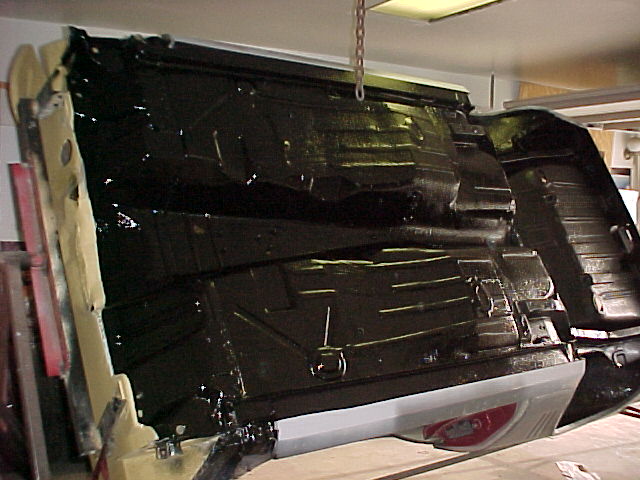 I coated inside and out of my 69 Vette pan and my 69 Camaro with truck bed liner. I thinned it down a bit to avoid excess build up where it was not needed. I shot the inner firewall and the ceiling, inside the trunk and backside of the quarter panels.