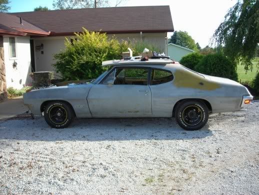 Last night I went to look at a 1971 Pontiac Le Mans in the area because the description sounded way too good to be true. Well, it turned out to be just about acurate! The frame is in perfect shape, new suspension components and everything. The body has some dents here and there, and very minor rust holes. The kind you can probably fill in, too small to even warrant a patch. It's been prepped almost completely down to the metal. The engine is a reman'd 30 over chevy 350 that fired right up, has a rebuilt turbo 350 trans, new tires, complete 18 circuit painless wire kit. Minor work to be done, and it's ready for paint. The interior is mostly missing, but that's alright by me. Won't take much to make a running car out of it, and not much more to make a g-machine out of it. I have some pictures I'll stick up when I get home tonight. All in all, I'm pretty excited by the prospect!
