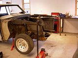 Got started on mocking up the front framerails yesturday. Need to do a little more adjustment before they get some more tack-welds. Then i will mock up the entire front and fenders in order to make sure that everything fits perfectly before welding them solid. And then it is on to the Mustang II components that needs to be welded in. Hopefully it will not be long before i have the controlarms etc. Then i will be able to put the car back on the ground and see how it looks.