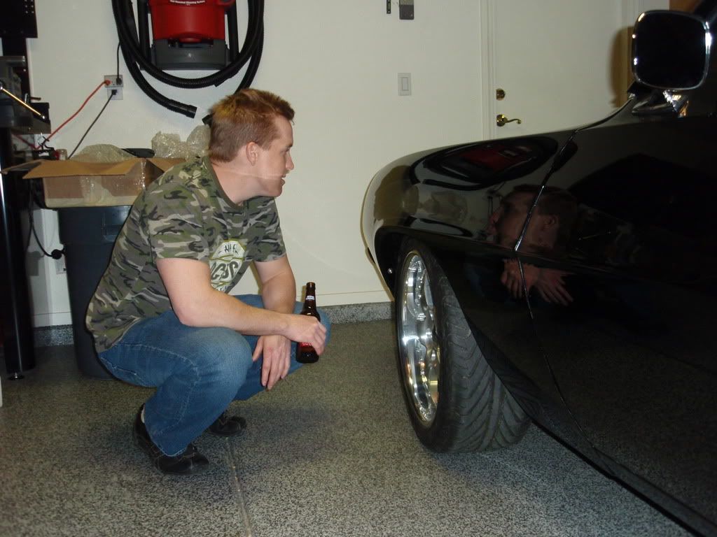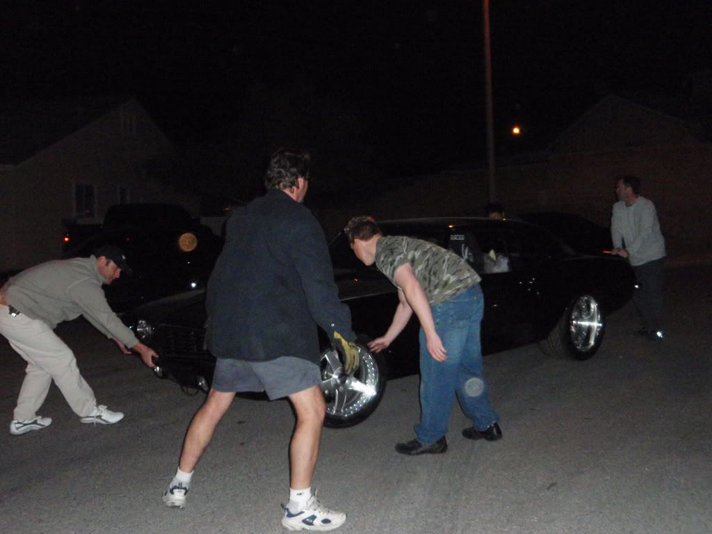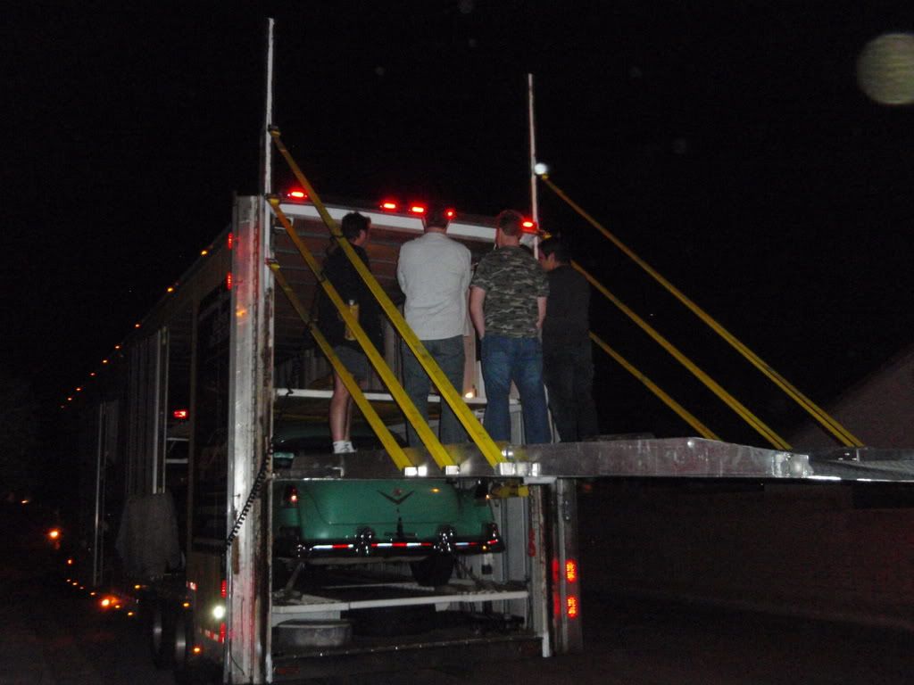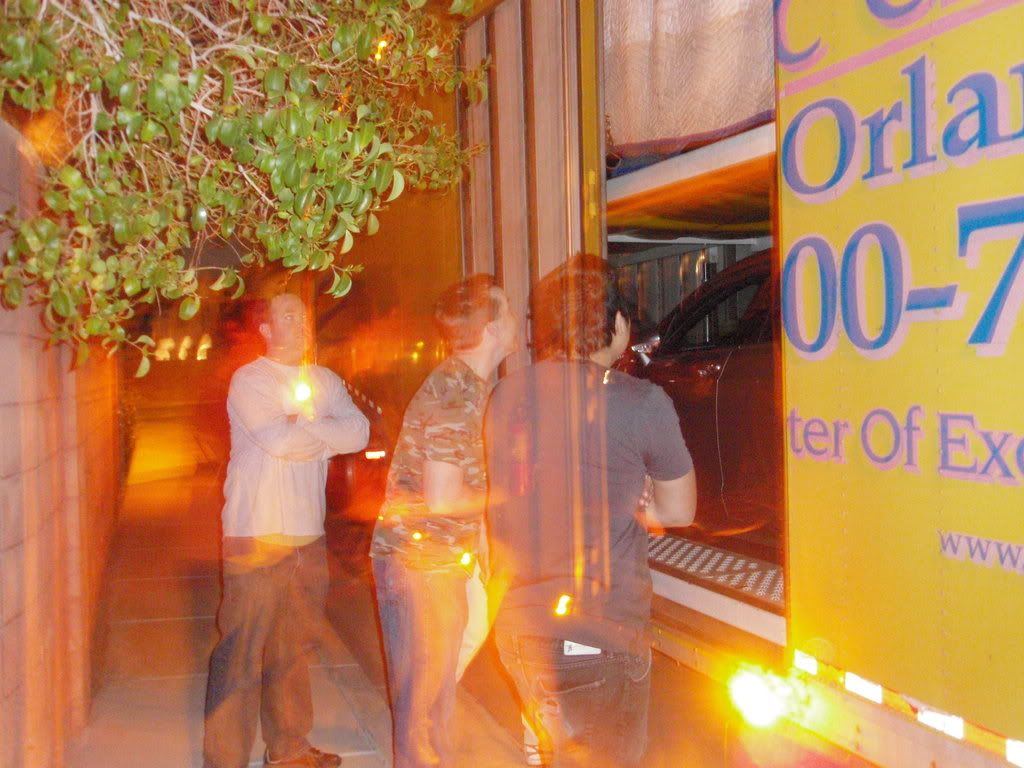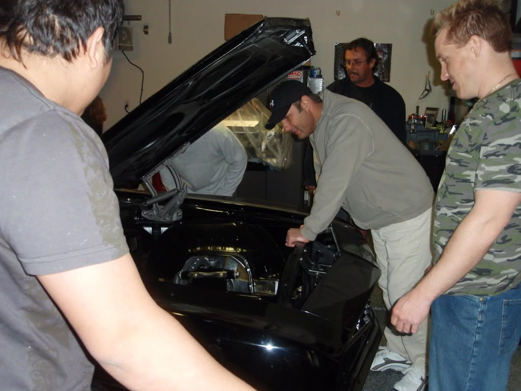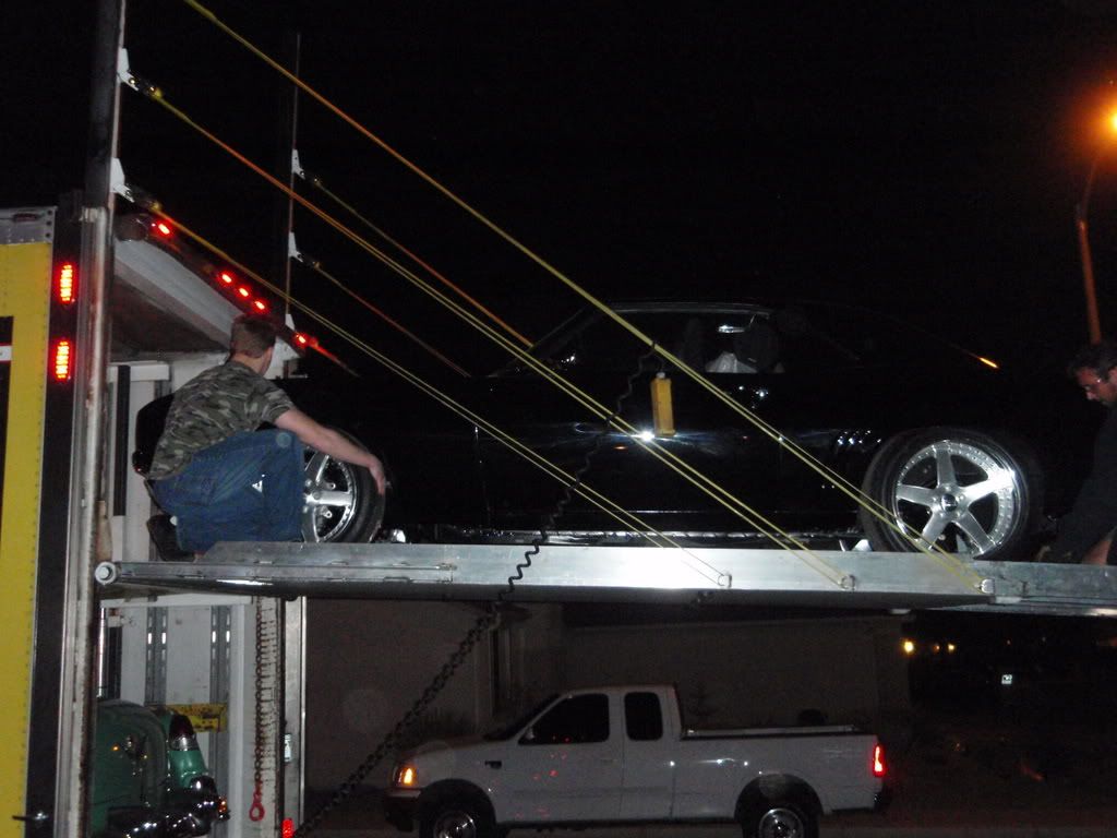 I have to say my vision for the car is better than I imagined. Looking at photos over the last couple years just didn't do it justice. I wouldn't change one damn thing. One of my best buddies showed up late and he said the same thing. That means a lot coming from him. Frank, you guys did one hell of a job on my car! You need to give Mike and Andrew a raise. The car is so Flippin straight it makes me sick! All my friends couldn't believe the paint job. It was under the flourescent lights with one quick wipe! The car is just plain ridiculous! Thanks buddy. Last but not least is my girl Kelli. She did one hell of a job of taking pictures of the hole ordeal. I don't know what it's like to have a baby but it can't be to much more dramatic:D I felt like a crack head that hadn't slept for a month. I actually did a little work on her but that can wait. Here are the photos Kelli took: (Ignore my ugly mug) Waiting on the car going nuts! http://i200.photobucket.com/albums/a...9/P3300024.jpg Everybody trying to get a peek http://i200.photobucket.com/albums/a...9/P3300034.jpg First real glimpse http://i200.photobucket.com/albums/a...9/P3300042.jpg She has not brakes, steering , or engine:D We had to make sure it didn't roll off the back of the truck |