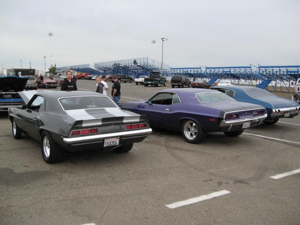 Thanks guys! Here is a pic of our group(Sac raceway). The grey camaro is mine. Im on my 15" drag tire set up. Normally on 18's .
