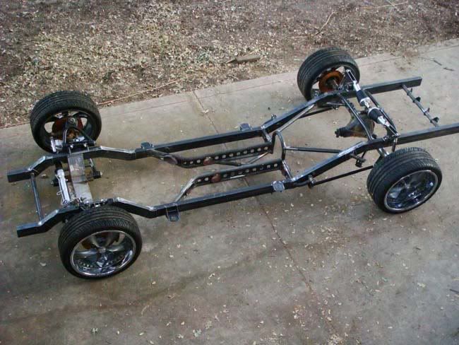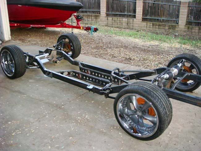 The frame has a porterbuilt front crossmember with modified upper control arm mounts and modified air ride tech strong arms, shockwaves, cantilever rear suspension, trianglated 4 link, 5" ride height, narrowed track width so i can drive it low and do a full turn. http://i212.photobucket.com/albums/c...ewofframe2.jpg http://i212.photobucket.com/albums/c...ewofframe3.jpg http://i212.photobucket.com/albums/c...iewofframe.jpg http://i212.photobucket.com/albums/c...ewofframe2.jpg |