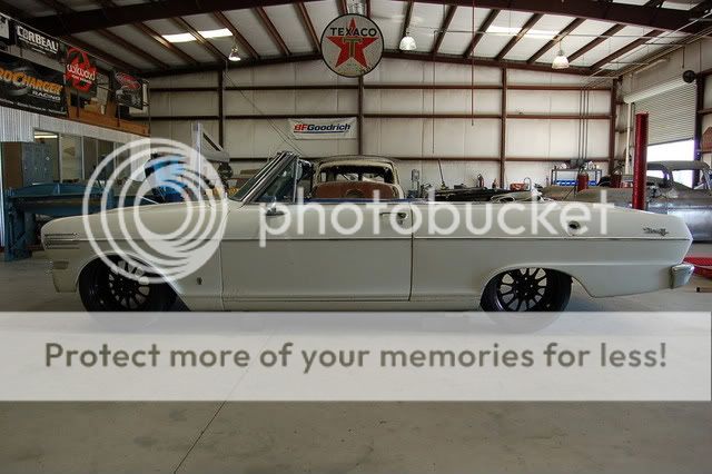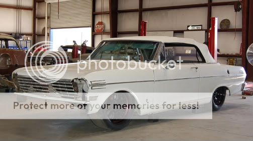 1962 Nova Convertible (Drop-Top). I've had the car for 13 years after purchasing it in 1995 for $1440. I drove it for several years, and eventually parked it. I never changed the oil, I just added to it........... Nothing was done to the car in thirteen years.... NOTHING. As you can see below, it was bone-stock. Well, the time has come to start 'modifying' it. As you'll see, that is an understatement. The plan is to build a bitchin' cruiser with modern running gear. I plan to use Corvette running gear and Corvette suspension. The twist is this: I've always wanted to build a car with a removable frame.... so here is my chance to fulfill that dream. My day-job has kept me way too busy to do the project like I envisioned it…. So I finally decided to have someone else to do it!..... and that was a VERY difficult decision. After doing some research, I decided on Rodger and his crew at IRONWORKS SPEED AND KUSTOM. I like his vision, his enthusiasm, and his workmanship. Enough words, here are some photos…….. As it arrived at IRONWORKS (a.k.a. Novaworks): http://i338.photobucket.com/albums/n...11-2008014.jpg IRONWORKS wasted no time in dismantling the Nova to determine a proper ride height. Here are some mock-up photos: http://i338.photobucket.com/albums/n...17-2008026.jpg http://i338.photobucket.com/albums/n...17-2008028.jpg http://i338.photobucket.com/albums/n...17-2008027.jpg http://i338.photobucket.com/albums/n...17-2008032.jpg More to follow soon……………… |
