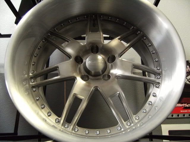 Here is a wheel that we finished today that I just had to post a picture of for you guys. I know we are constantly asked to show wheels in different finishes, and this one came out SWEET. The design is the Whiplash, and the finish is Smoked Titanium Center, and Brushed with Clear outer. Enjoy!