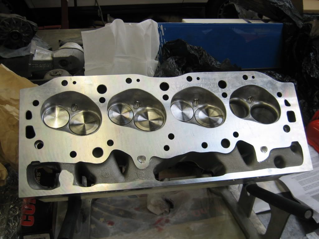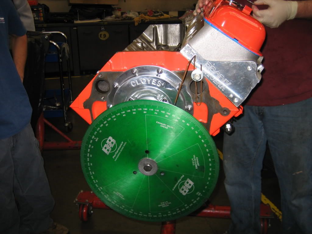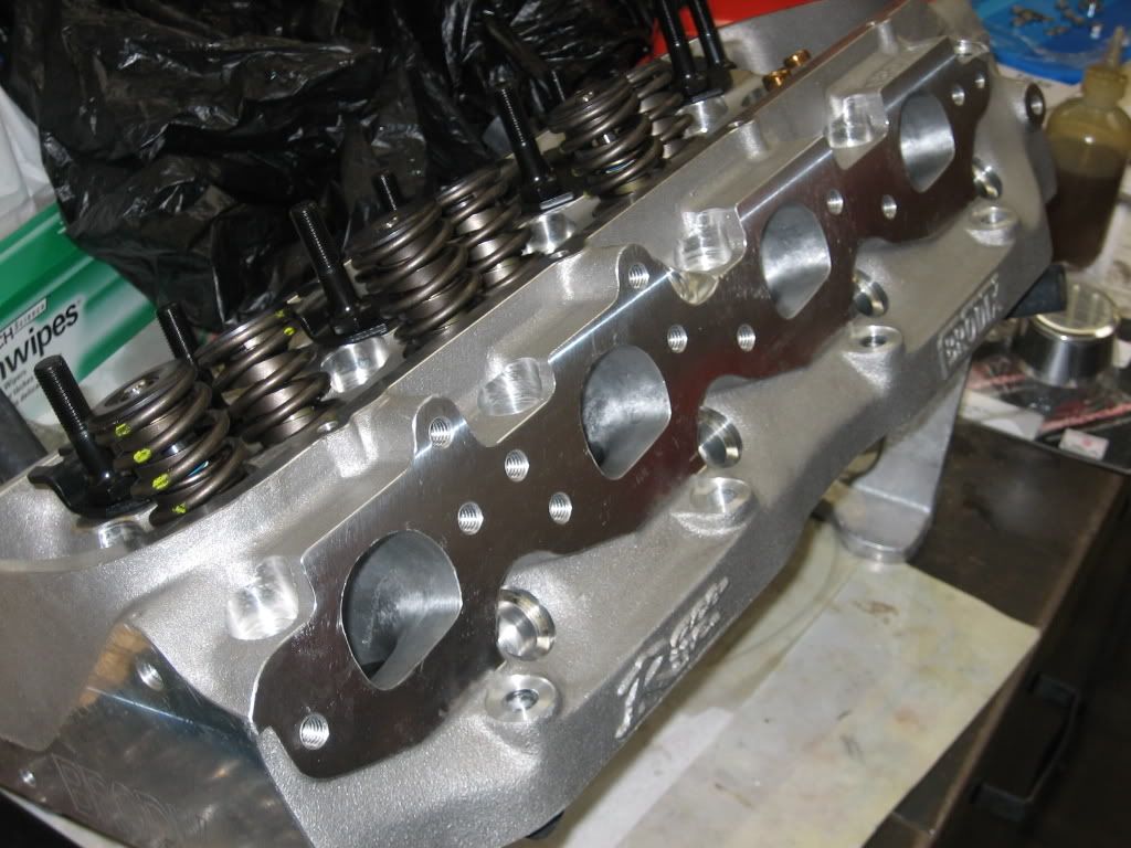 http://i328.photobucket.com/albums/l.../Engine005.jpg All the main bearings are clearanced within .0001 of each other, for very even oil distribution. The goal is not so much max HP but a high HP build that will be very reliable. Brodix RR-O heads are purchased. Out of the box they have a horrible run-out on the valve seats (max of .009; when we want to see under .002 at least; ideal is under .0005). The guides are honed, valves are checked (they are really good less than .0005 run out on the valve face). Machining the valve seats is done and a run-out of under .0005 is attained. The heads are surfaced (the surface wasn't perfectly flat, plus wanted to raise the compression just a tad). http://i328.photobucket.com/albums/l...Engine013b.jpg The intake and exhaust ports are ported and polished. http://i328.photobucket.com/albums/l...Engine013a.jpg The chambers are cleaned up and CC matched within 0.1 CC of each other. The heads are vacuum checked (20in of Vacuum they seal nice and tight). Should have a real nice and even compression ratio across all cylinders of 9.8:1: http://i328.photobucket.com/albums/l...Engine013c.jpg Cam goes in: http://i328.photobucket.com/albums/l.../Engine015.jpg It is a Comp Cams "Thumpr" roller cam 227/241 @.050 547/530 lift 107deg lobe separation. I went with the Thumpr as from my understanding a common weakness of a big block is it lack of exhaust breathing. My hope is that with the 107 deg lob separation and the increased exhaust duration that this will help correct some it. |