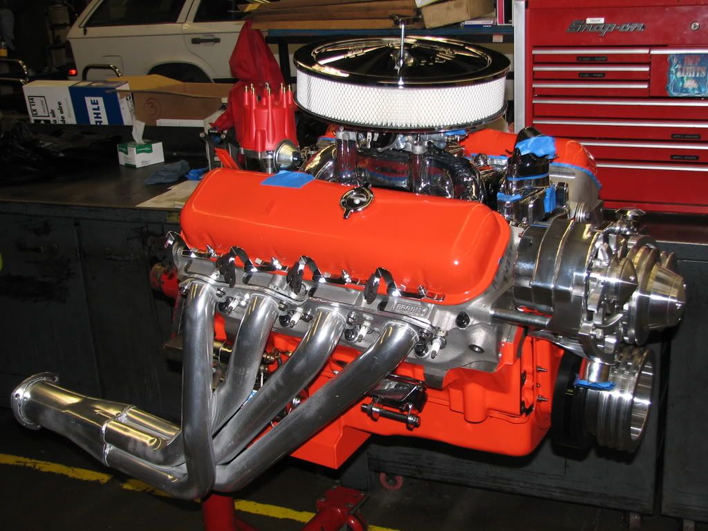 http://i328.photobucket.com/albums/l.../Engine030.jpg March performance pulleys for v-belt systems and Holly Street avenger 770cfm with air cleaner go on: http://i328.photobucket.com/albums/l.../Engine031.jpg Hooker ceramic coated headers with 2” primaries and 3.5” collectors: http://i328.photobucket.com/albums/l.../Engine032.jpg http://i328.photobucket.com/albums/l.../Engine033.jpg Finished product ready to start up: http://i328.photobucket.com/albums/l.../Engine034.jpg |
