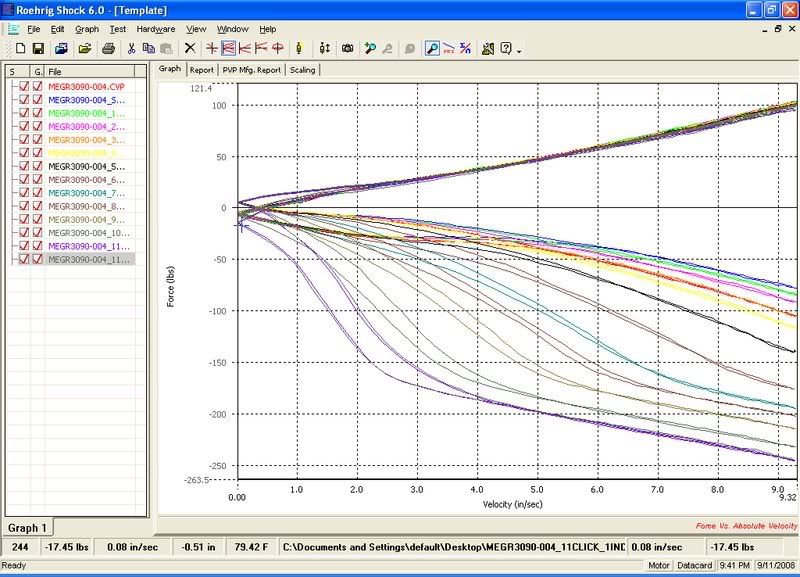 I also have my test graph with overlays of each run. I started at full soft then increased one click at a time. Which run is critical daming taking place and which run is dampening just before critical damping taking place? http://i18.photobucket.com/albums/b1...kDynograph.jpg |