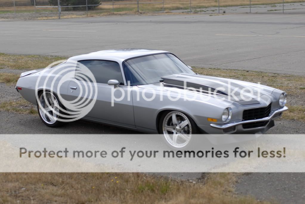 For the drivetrain, I bought a LS1 and 6 speed transmission out of a 2001 SS Camaro. The headers are off a 2001 Camaro and are modified by me to fit. With Speedway engine mounts and an ATS crossmember it slid right in. Then I bought the ATS clutch master cylinder plate and some used 4-speed pedals and I was done. The fuel system was pretty slick too. I bought a Dorman fuel line kit off Ebay and a corvette fuel filter/regulator. Then fabricated a mount and put a Walbro high-performance fuel pump in the gas tank. After taking some measurements I found that a late 1990’s Mustang aluminum driveline would work great. I just had to change the u-joints. (Then I found a nice Spicer aluminum one on eBay so I used it instead) The driveline mates to a Ford 9” with an aluminum center section , 4:10 gears, and a True Track posi unit. Ok, at that point I can make it go fast and turn really nice, but how could I make it stop. I called several brake companies, but I didn’t have that kind of money. So back to eBay I went. I outfitted the car with new Corvette C-5 brakes, Hawk HPS pads, vented/cross drilled/zinc coated rotors, stainless lines, Wilwood master cylinder, and Kore3 rear brackets for about $1100. Yes, it stops on a dime and leave change. (ha ha) Since I already knew the I was going to drive the hell out of this car, silver seemed like the best color. I knew it needed to be smooth so I shaved the emblems, welded up the seam on the header panel, turned a piece of junk fiberglass hood into a nice fit, converted the car to a small spoiler, and painted the trim black. The paint and body worked turned out nice and it’s low maintenance too. I do paint and body work in the evenings, so this was not my first time. For the interior, I rebuilt it back to stock with a few exceptions. The usual new headliner, door panels, dash, seat upholstery, and carpet. It also has Autometer gauges, a decent stereo system and I rewired the car with a Ron Francis Bare Bones kit. I also made a stock automatic console fit with the six speed shifter. Last is the wheels. They are ZE Forged Tach wheels: 20x10 out back and 19x8 upfront. I tucked them in 1 ¾” front and back so the tires wouldn’t rub when I go hard into the corners. The are wrapped in BF Goodrich G-Force KDW tires. 285/30/20 out back and 245/35/19 up front I really did build this car in my garage by myself in 12 months. It would have been quicker, but my full time job, coaching soccer, and family trips quickly came first. I am not a big $ guy, there was a real budget here. If I ran out of the hotrod fund, that was it. In turn, this was a great opportunity to take a step forward and commit to learning something new everyday. That which I could not afford had to be figured out and done by me. Thank you pro-touring forums and Mark Savitske you got me unstuck many times. Anyway, the Camaro averages 21mpg and I beat the snot out of it every time I get the chance. I am learning how to autocross. I hope I can help people realize that you don’t have to be rich or have a great automotive training to build a nice car. I have had no automotive schooling and work in a business office all day. If I can do it, anyone who wants to can. Go for it, if you fail do it again until you get it right. And for god sake have some fun! http://i366.photobucket.com/albums/o...0/_DSC0017.jpg http://i366.photobucket.com/albums/o...0/_DSC0020.jpg http://i366.photobucket.com/albums/o...0/_DSF0019.jpg http://i366.photobucket.com/albums/o...0/_DSF0010.jpg |