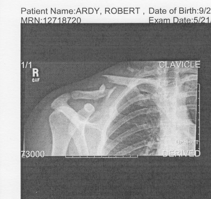 That x ray looks like my collar bone after I wrecked my dirt bike.broke 4 ribs and punctured lung to.not fun