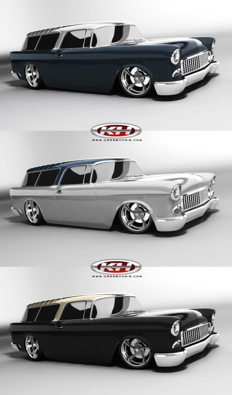 This project is in its very early stages of development. We aim to turn this 50's SUV-like nomad into a modern,sports car handling, grocery getter. The sheet metal work is 50% complete at the moment. heres a list of parts that will be used in the build. -Chris Alstons front end/canted billet 4-bar rear suspension - crate LS2/TH400-GearVendorOD/Fab 9 drive train - Air Ride Shockwave suspension - 19x8 front 20x10 Intro Twisted Sedonas - 13"/11.6" SL6R Wilwood brakes The car will have many mods, mostly custom fitting. The most noticeable will be the bumpers and trim. Here is some renderings we had done by Kris Horton http://i271.photobucket.com/albums/j...omadColor1.jpg http://i271.photobucket.com/albums/j...te_Colors3.jpg Heres some early photos of the car Before acid dip http://i271.photobucket.com/albums/j...hassis/029.jpg After acid dip http://i271.photobucket.com/albums/j...hassis/009.jpg http://i271.photobucket.com/albums/j...s/DSC07060.jpg More to come, chassis is next. |