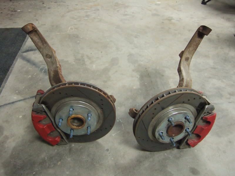 Ls1 front brake swap. Spindles, Calipers, Drilled and Slotted rotors. I don't know what brand these rotors are, but it all seems to be in very good shape. I drove the car these were on, but they did not squeak as some of the aftermarket rotors do. $275 shipped. (only because shipping is so high these days on those).