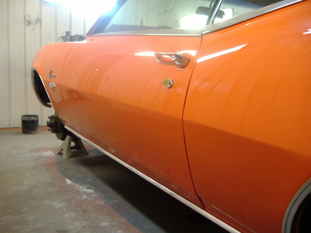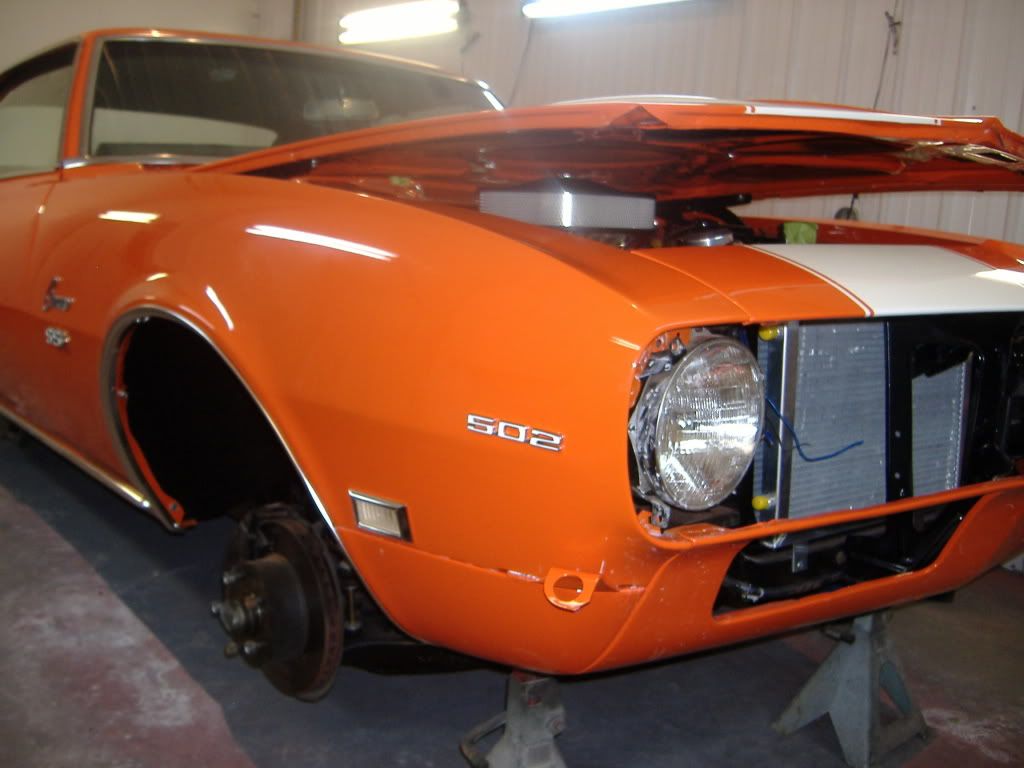 I just finished this one 2 weeks ago. Was a numbers matching 1968 camaro SS 327 4 speed. I did quarter panel replacements, color change,swapped in a 502ci,tremec 5 speed and rear disk brake conversion. Power steering,power brakes,A/C and painless wiring was also added to this car.http://i155.photobucket.com/albums/s...scamaro010.jpg