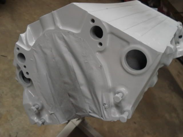 Once the parts are clean CLEAN CLEAN!, we clean 'em again with wax / grease remover, then spray the blocks with regular basecoat / clearcoat car paint over the bare steel. I've got a PPG Deltron coated motor in a car with 25k miles on it and it looks like new.